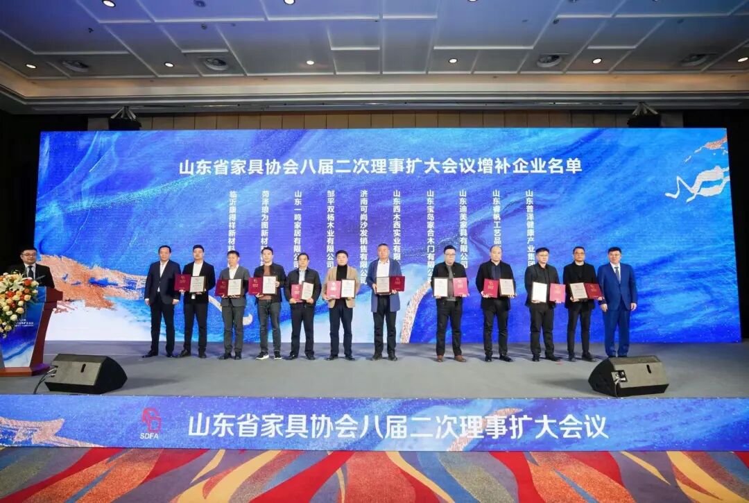 随后,山东省家具协会秘书长王腾宣读增补理事单位名单,山东普泽健康产业集团有限公司,山东睿帆工艺品有限公司,山东迪美家具有限公司,山东宝岛家合木门有限公司,山东西木西实业有限公司,济南可尚沙发销售有限公司,邹平双杨木业有限公司,山东一鸣家居有限公司,菏泽狼为图新材料科技有限公司 红桃视频网站,临沂健康得祥新材料有限公司共 10 家企业入选,山东省家具协会会长/青岛一木集团有限责任公司总裁刘少龙与山东省家具协会轮值会长/山东凤阳家居有限公司董事长邸喜宁为增补企业授牌及证书。